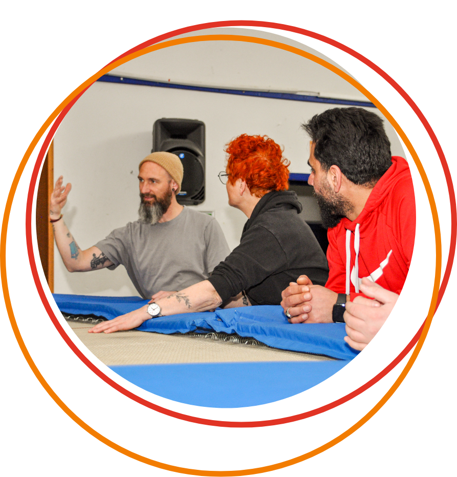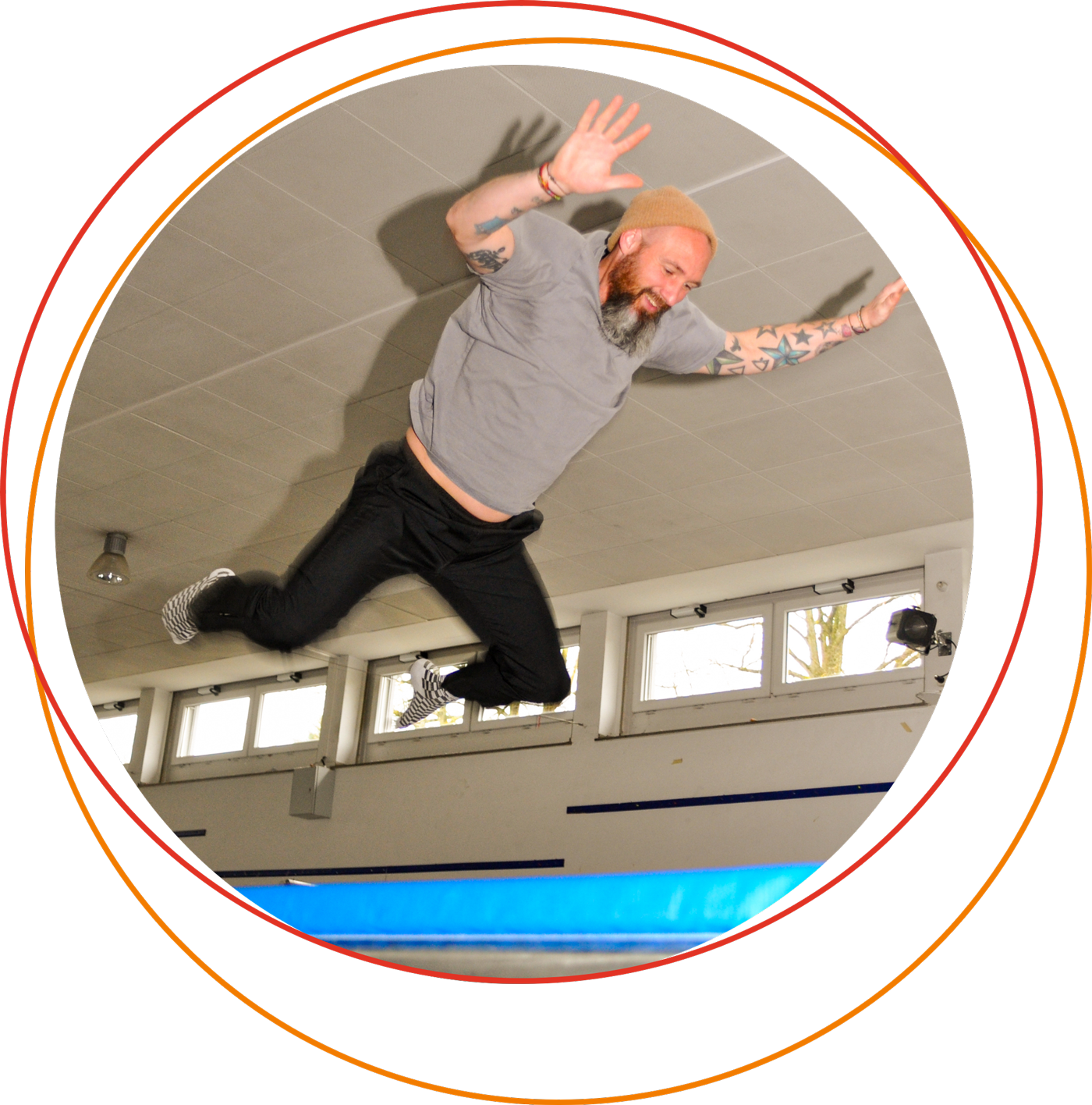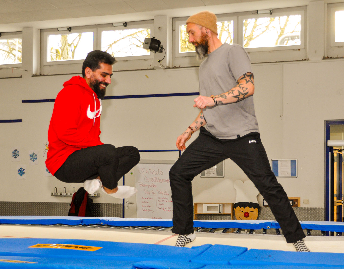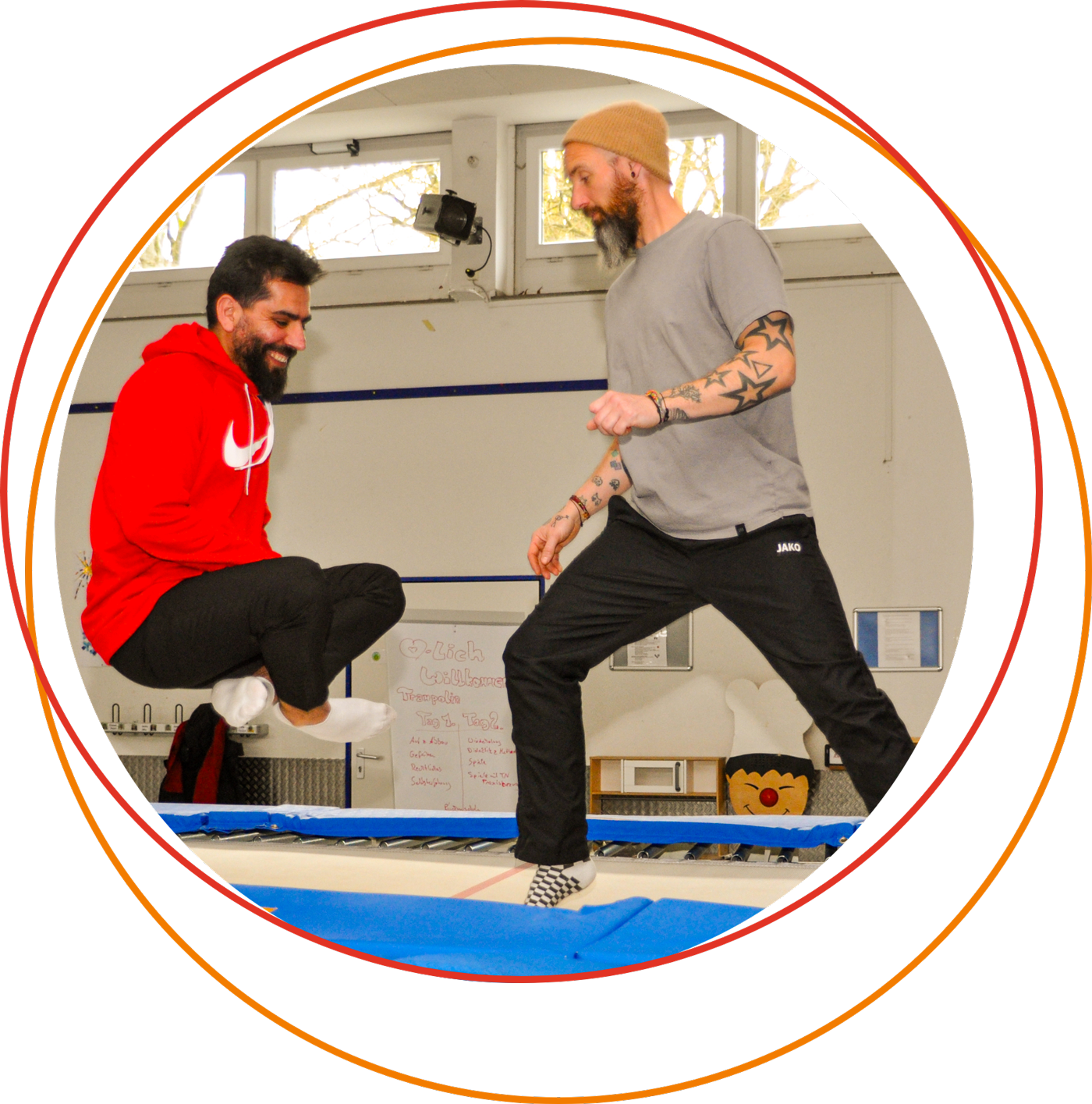 Kinder lachen, Erwachsene fühlen sich leicht, Menschen mit Behinderung erleben Selbstwirksamkeit – Trampolin macht alle glücklich. In deiner Ausbildung lernst du, wie man dieses Erlebnis für wirklich jede Person zugänglich macht.