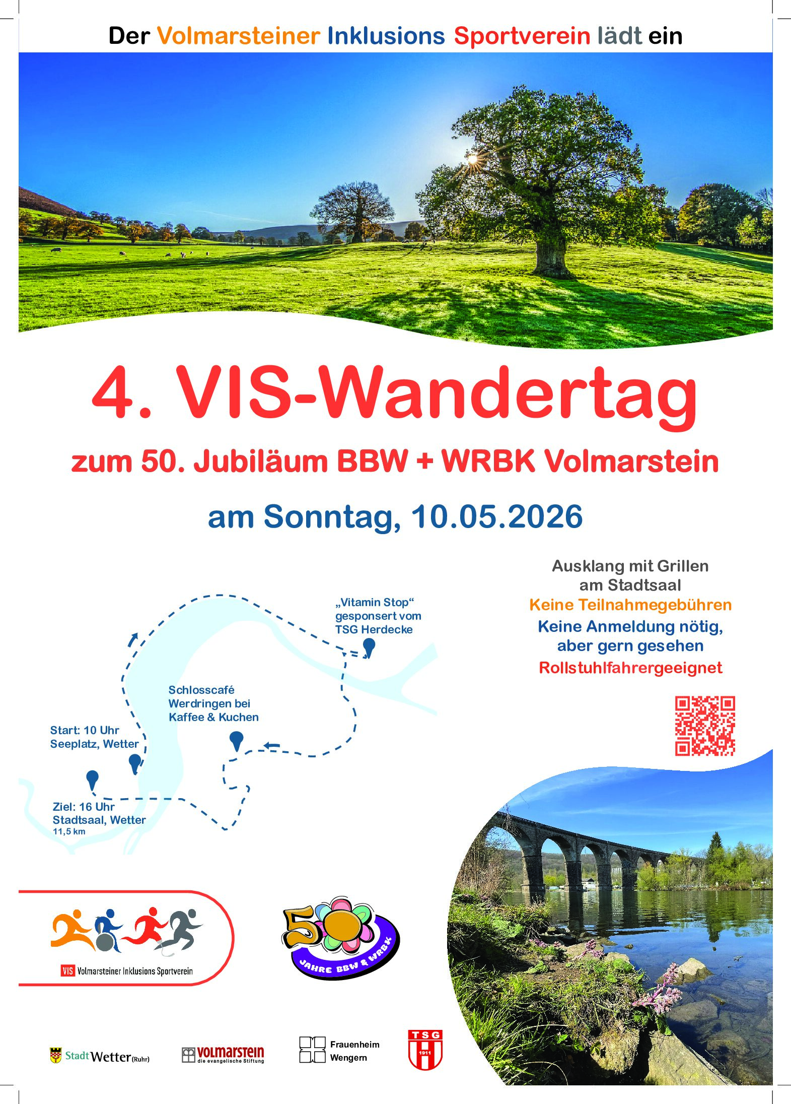 In diesem Jahr wandern wir gemeinsam mit dem Berufsbildungswerk und dem Werner-Richard-Berufskolleg Volmarstein anlässlich des 50. Jubiläum der Einrichtung.